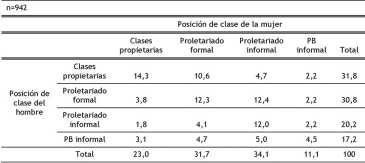 Hasta el momento se analizó la prevalencia de las relaciones de las clases temporales y mediatas que conectan a los trabajadores formales e informales en la estructura de clase. En la siguiente tabla se proporciona la combinación de relaciones temporales y mediatas para los individuos en la muestra que se encuentran en el proletariado formal (primera tabla), proletariado informal (segunda tabla) y la pequeña burguesía informal (tabla final). El objetivo de estas tablas es comprender la prevalencia y morfología de la informalidad para cada posición de clase.